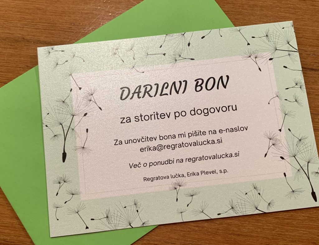 Darilni bon ti pošljem po pošti ali e-mailu ali ga pošljem obdarovancu v tvojem imenu.